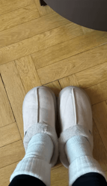Calor inmediato gracias al forro de felpa. Ideal para mañanas frías: evita escalofríos y hace más cómodo preparar café o vestir a los niños sin sentir frío en los pies.